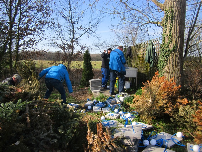 Es wurde das schadhafte Holz rund um den Teich entfernt, soswie einige kaputte Bäume umgeschnitten. Vor den Toiletten wurden Kirschlorbeersträucher gesetzt und beim Putzplatz Thujen. Ignaz und Günter haben den Abfluss neu gestaltet und die Pfosten erneuert.