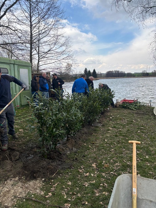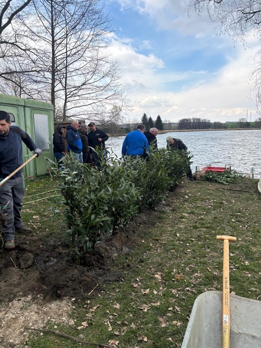 Im April gab es den ersten größeren Arbeitseinsatz am Teich. Rund 20 Kollegen sind der Einladung gefolgt und haben tatkräftig mitgeholfen.