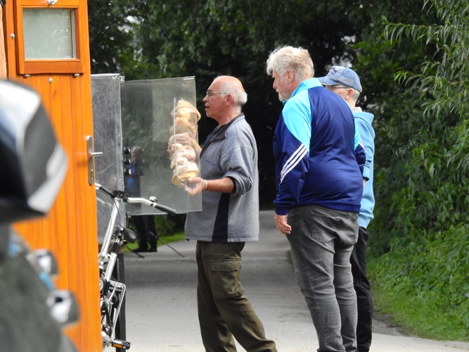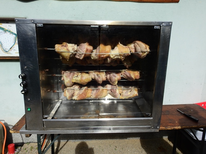 Somit musste das tolle Mittagessen über so manche Enttäuschung hinwegtrösten. Es gab Stelze, die von Günter Schmidt am Grill zubereitet wurde, Gerhard und Karin waren für die Ausgabe zuständig.