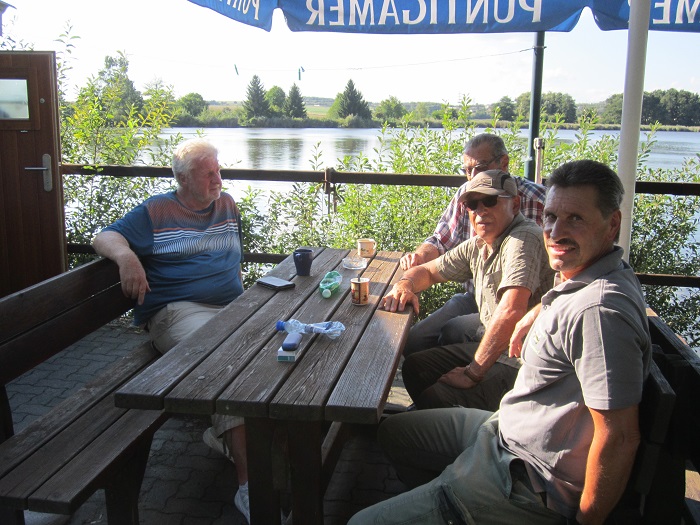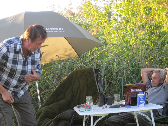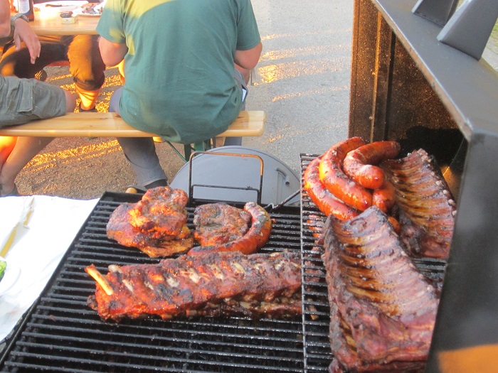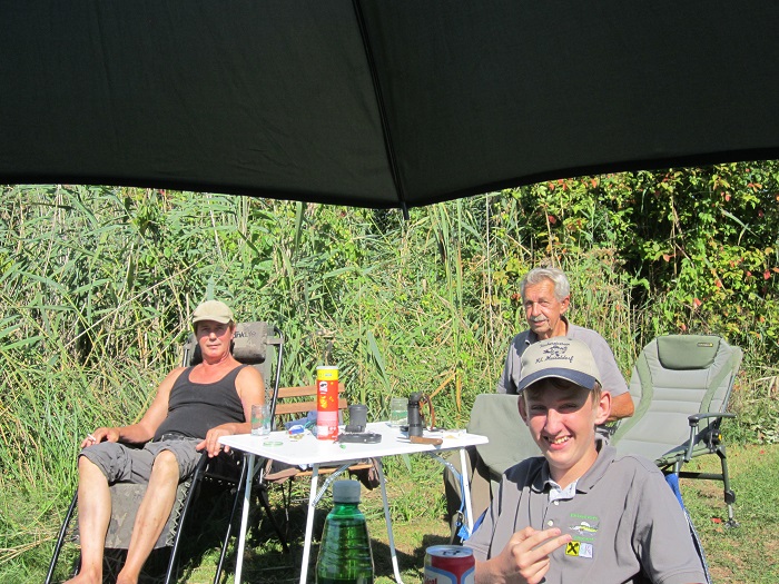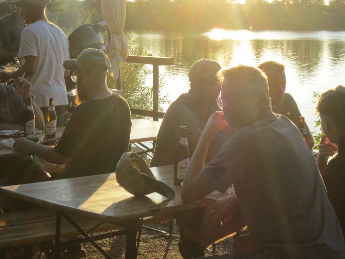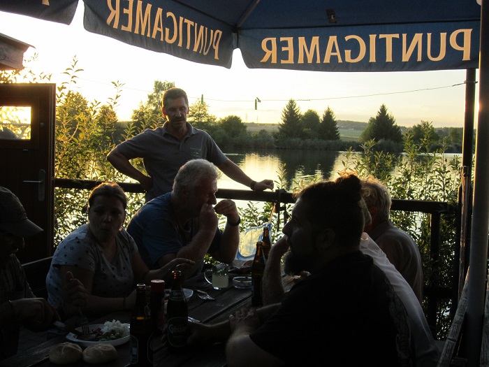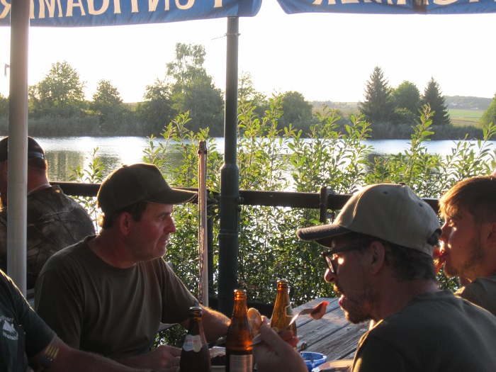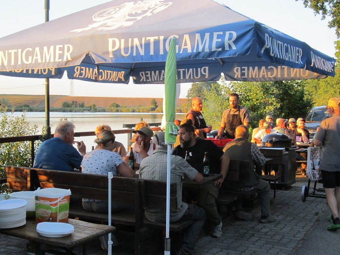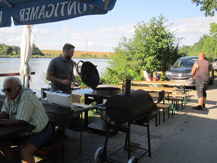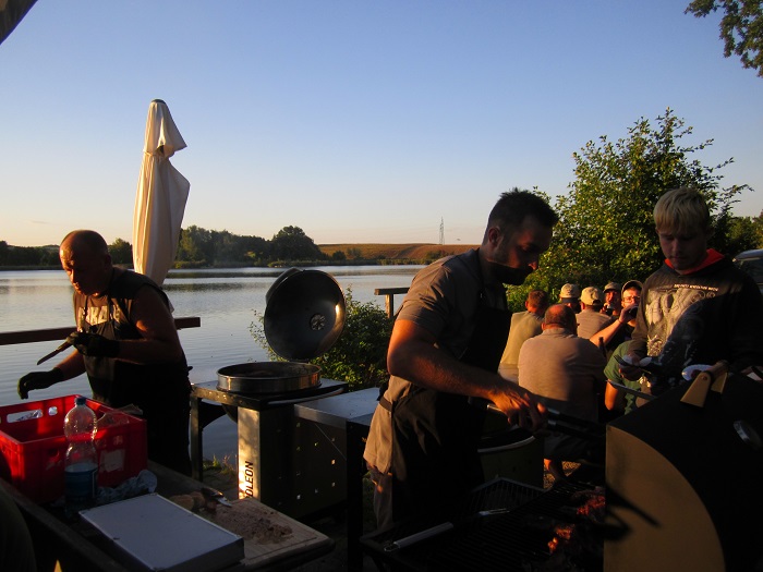 Auch nachmittags ging es bei vielen gut weiter, und nur die wenigsten Paare konnten sich noch nichtüber Karpfen freuen. Gegen 18.00 Uhr gab es köstliche Ripperl, Koteletts und Käsekrainer, die von Flo Maier und seinemVater in bewährter Weise hervorragend gegrillt wurden.Bei dem einen oder anderen, kühlen Getränk wurden die bisherigen Erfolge ananlysiert und sicher die eine oder andere Taktik besprochen. Bei vielen zeigte sich auch über die Nacht, dass die Karpfen in Beisslaune waren und der eine oder andere Schuppi bzw. Spiegler konnte noch überlistet werden.