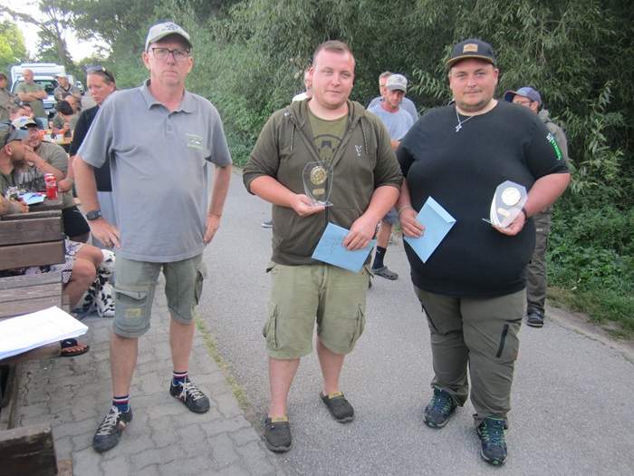 Somit können wir die ersten sechs Plätze wie folgt bekannt geben: Sechster wurden mit 31,10 kg die Kollegen Weitschacher/Weitschacher auf Platz 7. Den 5. Platz erreichten Thomas Zeder mit seinem Partner Hohenegger. Sie fingen 39,60 kg auf Angelplatz 6. Auf Angelplatz 20 erreichten mit 47,60 kg die Fischer Hofbauer/Wagner den 4.Platz. Dritte wurden am Platz D1 mit 84,00 kg unsere Mitglieder Dvorak Rene und Thomas. Am zweiten Platz landeten mit beachtlichen 87,15 kg unsere Fischer Honeder Rudi und Hampl Dominik. Und stolzer Sieger mit den tollen Ergebnis von 129,7 kg wurden auf Platz 4 unser Ignaz Hrdlicka mit Jürgen Schweitzer,