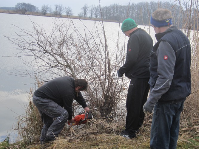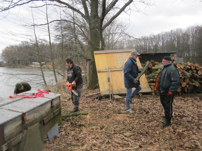 Nachfolgend ein kurzer Bericht über die ersten Holzarbeiten im Jahr 2021. Am 27.01. hat es den ersten Einsatz am Teich gegeben. Es ging darum die zahlreichen Schäden, die durch das Eis auf den Bäumen entstanden sind, zu beseitigen. Dem Aufruf von Günter sind folgende Helfer gefolgt: Dieter und Manfred Antony, Schmidt Günter und Brigitte, Lahner Helmut, Rockenbauer Anton, Seidlberger Franz, Hrdlicka Ignaz, Maier Florian, Fidler Martin, Weitschacher Jürgen, Groschopf Sascha, Bock Christian, Riel Daniel und Schalkhas Harald. Es war wirklich sehr erfreulich, dass sich 17 Kollegen bereit erklärt haben, zu helfen. So konnten 2 Gruppen gebildet haben und während sich Dieter und Manfred, sowie Iganz, Rocky, Harald und Martin Richtung Platz 1 auf den Weg machten, begann die andere Gruppe bei Platz 27 mit der Arbeit. Auf den Bildern sieht man, dass durch das Eis viele Bäume und Sträucher stark in Mitleidenschaft gezogen waren und somit viel Holz wegzuschneiden bzw. umzuschneiden war. Herr Wagerer hat uns mit seinem traktor und Greifer super unterstützt und den Großteil des Holzes gleich weggeführt. Somit ist wirklich etwas erledigt worden. Die beiden Gruppen haben sich Richtung Hütte vor gearbeitet und zu Mittag gab es natürlich eine wohl verdiente Stärkung. Nach dem Essen wurde noch fertig gemacht, und gegen 15 Uhr ist ein intensiver Arbeitseinsatz zu Ende gegangen. Allen Helfern gilt der ausrückliche Dank des Vorstandes.