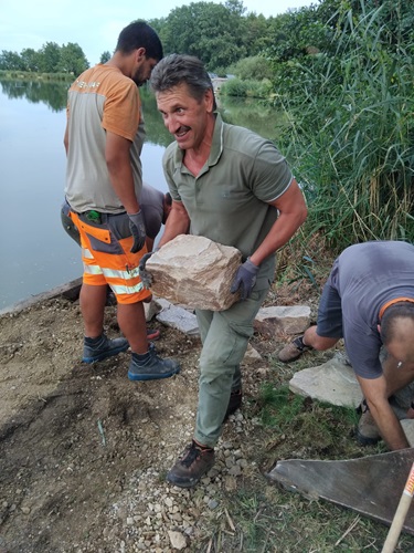 Am 21.08.2024 wurde endgültig auch der der Putzplatz neu angelegt, nach dem schon vorab der ziemlich desolate Steg entfernt wurde. Zuerst wurde grobes Material angeschüttet, der Rand mit großen Steinen befestigt und gleichzeitig auch der Abfluss saniert und ausgeräumt.Einige Äste bei den Bäumen rund um den Platz mussten ebenfalls entfernt werden. Zum Abschluss wurde alles noch fein planiert und somit präsentiert sich ein weiterer Platz in neuem Zustand.