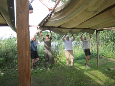 4 starke Herren werden die Plane schon runterbringen.