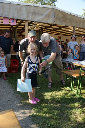 Auch Hannah zeigt ihre Medaille stolz dem Fotografen.