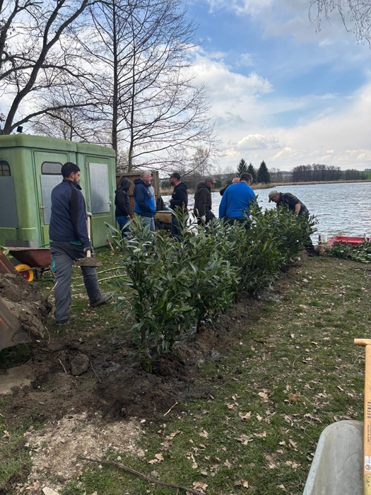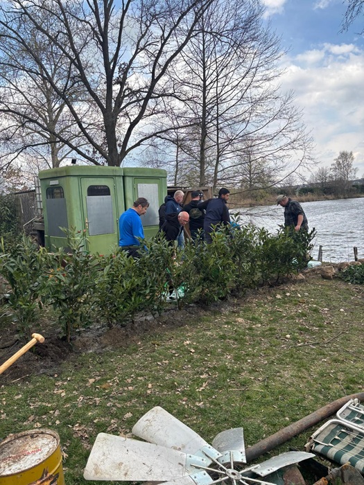 Im April gab es den ersten größeren Arbeitseinsatz am Teich. Rund 20 Kollegen sind der Einladung gefolgt und haben tatkräftig mitgeholfen.