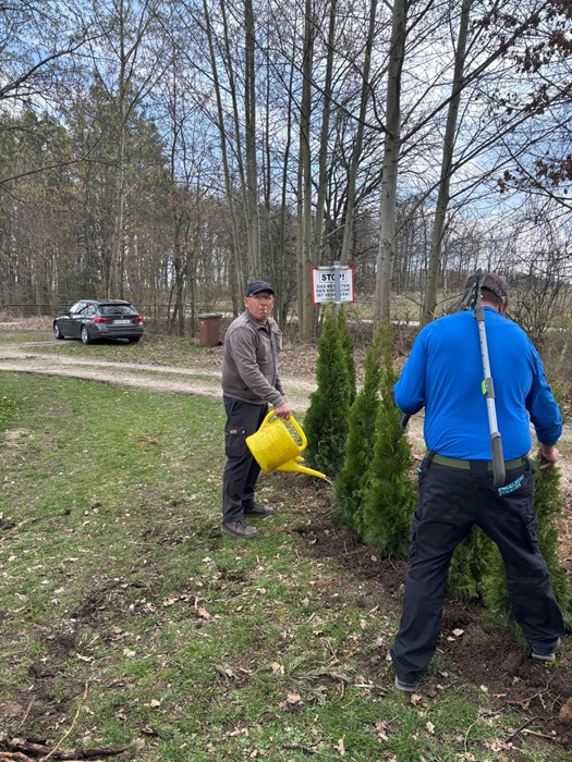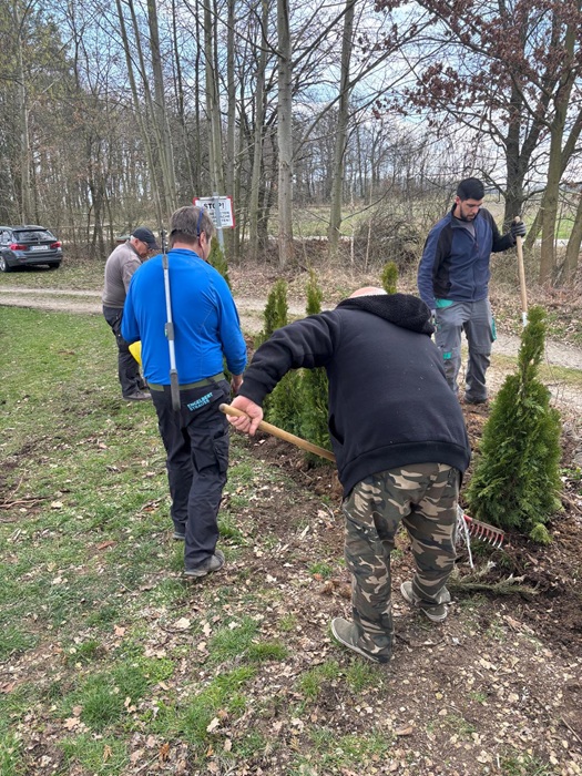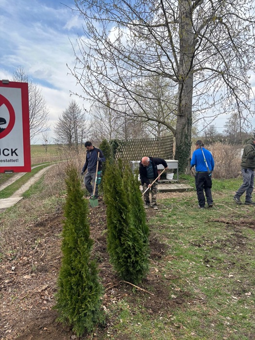 Es wurde das schadhafte Holz rund um den Teich entfernt, soswie einige kaputte Bäume umgeschnitten. Vor den Toiletten wurden Kirschlorbeersträucher gesetzt und beim Putzplatz Thujen. Ignaz und Günter haben den Abfluss neu gestaltet und die Pfosten erneuert.