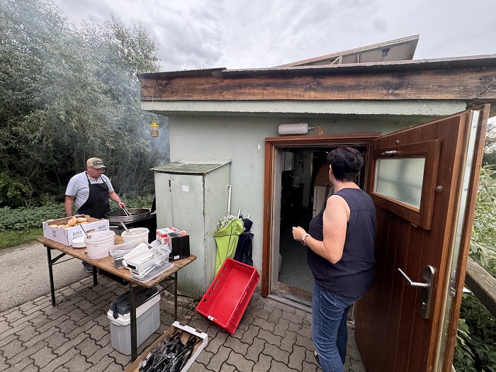 Vollbetrieb beim Essen bei der Hütte.